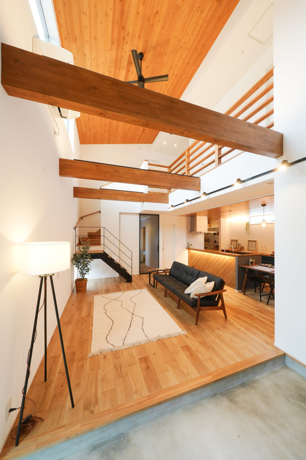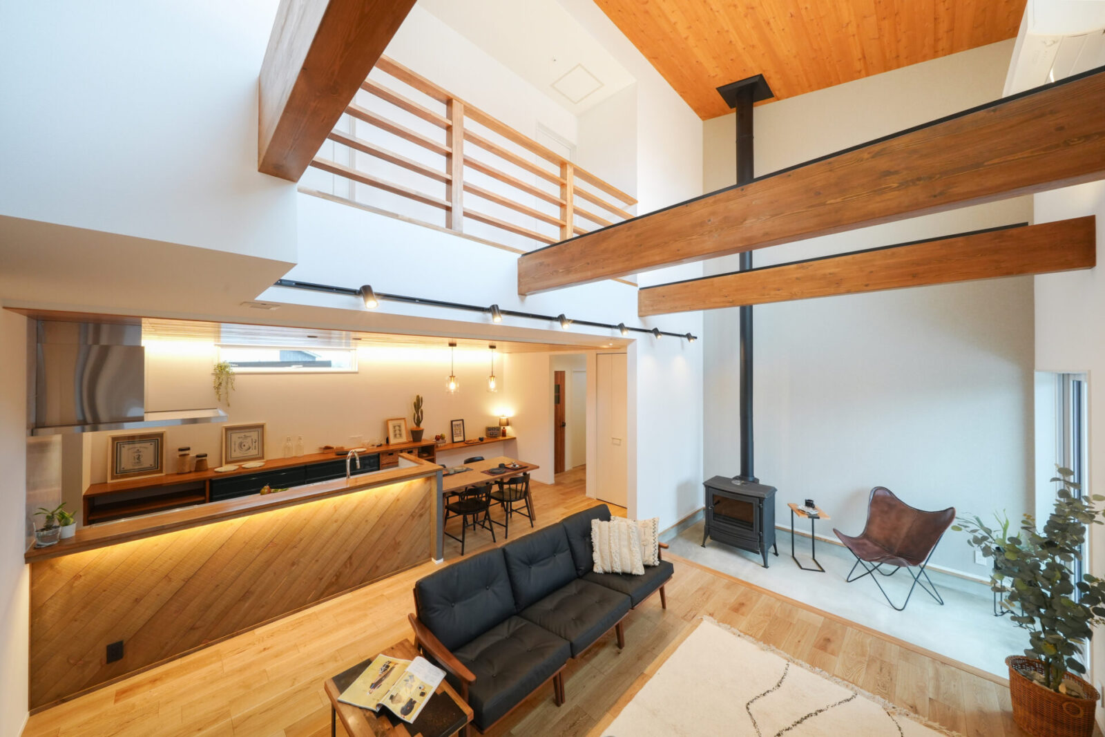 ☑大きな吹き抜けで二階まであたたかい薪ストーブ